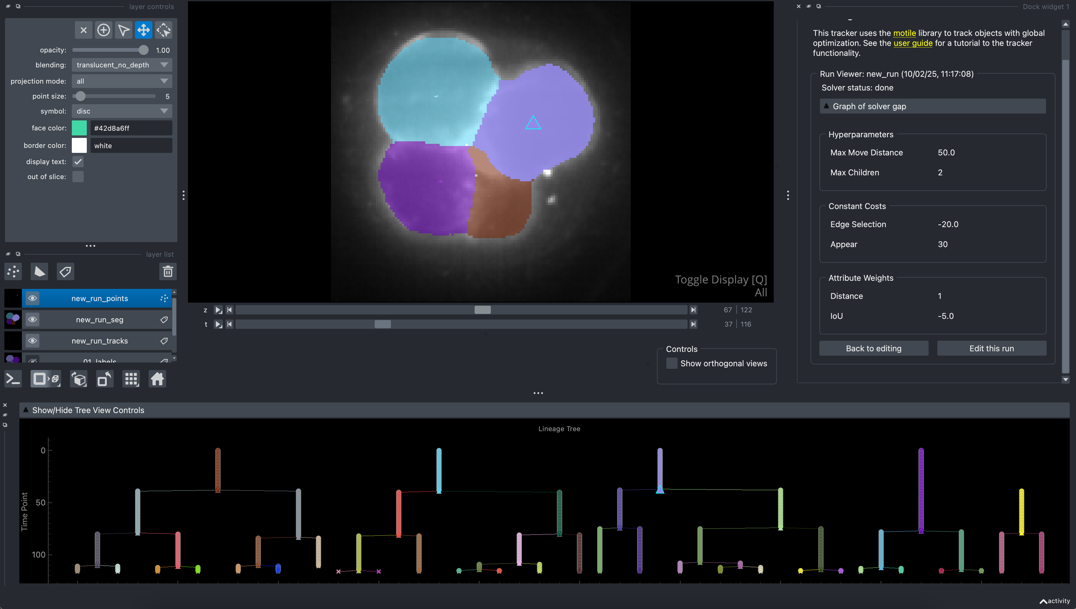 An application for interactive tracking with motile. Motile is a library that makes it easy to solve tracking problems using optimization by framing the task as an Integer Linear Program (ILP).